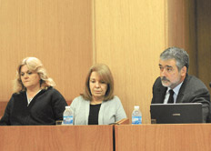 “Están prohibidas todas las manifestaciones de apoyo o rechazo”, dijo antes de empezar a leer el fallo Gauna Kroeger, presidente de la Cámara Primera en lo Criminal de General Roca, integrado también por los jueces subrogantes María García Balduini y Fernando Sánchez Freytes. Minutos antes, el constante murmullo en la sala se deshizo con la aparición de Freydoz, junto a su abogado Alberto Riccheri y su hija María Emilia. La hermana de la acusada y otros familiares permanecieron en las últimas filas, los otros tres hijos del matrimonio no asistieron a la lectura del veredicto.