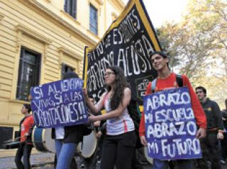 Alumnos de al menos 15 escuelas porteñas realizaron abrazos simbólicos a los establecimientos en donde cursan, en rechazo a los recortes de las especializaciones en educación media que pretende aplicar el gobierno porteño en el marco de una reforma de la escuela secundaria. Las escuelas Mariano Acosta (foto), Nacional 19, Julio Cortázar, Técnica 32 y el Lengüitas fueron algunos de los establecimientos escolares en donde se realizaron las protestas “contra el cambio curricular inconsulto”. Unos 150 alumnos del Mariano Acosta, ubicado en Urquiza al 200, acompañados por docentes, padres y el sindicato UTE, dieron la vuelta manzana al establecimiento con una bandera argentina de unos 10 metros y pancartas.