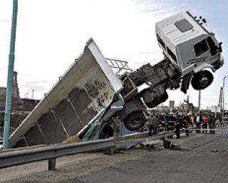 Como consecuencia de un insólito accidente, un camión quedó colgando durante seis horas sobre la banquina de la zona de areneras de la Costanera Norte, en la zona portuaria de la ciudad de Buenos Aires. Ocurrió en la mañana de ayer cuando el camión arenero, que estaba siendo cargado, comenzó a desplazarse marcha atrás, y, en su trayecto, chocó a un vehículo, rompió el guardarrail de protección y quedó suspendido entre la avenida Rafael Obligado y las aguas del Río de la Plata. Fue necesario el trabajo de dos grúas para rescatar al vehículo. Las causas del hecho, por el que no hubo heridos, aún se desconocen.