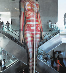El enorme lobo marino, fruto de la inventiva de Marta Minujin, está cubierto con el papel metalizado, de tonalidad dorada, que recubre los alfajores de chocolate de la marca más famosa de la Argentina. Son dos símbolos de Mar del Plata, a los que se suma una diosa profana como Moria Casan, eternizada por el artista plástico Edgardo Giménez en una estatua a cuerpo entero de 15 metros de altura. La Monumental Moria, como se llama la obra recordando uno de los éxitos televisivos de la diva, impacta con su presencia a los visitantes que llegan al Museo de Arte Contemporáneo de Mar del Plata (MAR), que para no de-sentonar, si de dimensiones se trata, pone a disposición sus siete mil metros cuadrados de infraestructura edilicia compuesta por tres locales en forma de cubo, divididos en dos plantas unidas por escaleras mecánicas. En el interior, hasta la próxima Semana Santa, se puede disfrutar de la muestra que recrea el espíritu del arte pop de los años sesenta, el movimiento hippie, el amor libre y alguna alusión a los movimientos político-sociales que en esos años conmovieron a la Argentina.