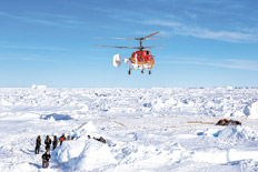 Finalmente, el jueves durante la madrugada, la aeronave logró aterrizar cerca del buque Akademik Shokalskiy y, en tandas de 12 personas, trasladó a los pasajeros hasta el Xue Long. Más tarde recorrieron unos 20 kilómetros y desembarcaron en un témpano de hielo junto al rompehielos australiano Aurora Australis.