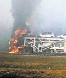 En tres kilómetros, y separados por minutos, dos choques en cadena frente a Baradero provocaron dos muertos y una decena de heridos. El incendio desbordado de un basural municipal y un banco de niebla colaboraron con la velocidad de los involucrados.
