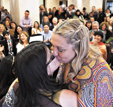 Ella pasó muchas veces por el Registro Civil de la calle Uruguay al 700. Una fue para intentar casarse, en el año 2007. Le dijeron que no, que no podía formar familia con otra mujer. Y así nació la campaña nacional por el matrimonio igualitario en la Argentina. Ella fue la cara visible de esa batalla social, política, jurídica, pero sobre todo cultural. Ayer volvió a ese mismo Registro Civil. Pero esta vez para celebrar, ahora sí, su propia boda. La legisladora porteña María Rachid (FpV) se casó con Maribe Sgariglia, en una ceremonia que fue tanto emotiva como política. A los familiares, amigas y amigos de las contrayentes se sumaron militantes de la diversidad sexual, diputados y diputadas de la Ciudad y de la Nación, referentes del Poder Judicial, todos partícipes desde sus lugares de aquella campaña. Justamente, antes de dar el sí, María Rachid contó que conoció a Maru en la militancia por el matrimonio igualitario. Luego, agradeció a su familia, a quienes acompañaron el reclamo y también a Néstor y a Cristina Kirchner, que dieron el impulso final para que se convirtiera en ley.