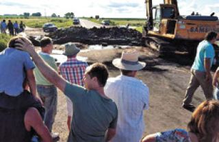 Durante Carnaval, la policía pampeana reprimió a vecinos bonaerenses que intentaban evitar que se cortara una ruta. El corte con máquinas intentaba desagotar el río Quinto hacia Buenos Aires. La gobernadora no hizo reclamo alguno y ahora el FpV pidió informes.
