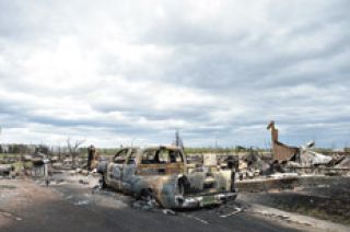 SOCIEDAD › AUNQUE EL FUEGO CAMBIó DE DIRECCIóN, EN FORT MCMURRAY, SóLO QUEDARON BOMBEROS
