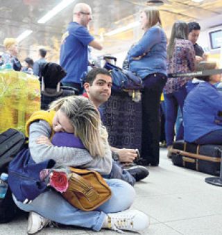 Miles de pasajeros vieron cancelados sus vuelos, que serían reprogramados recién para hoy. Entre los afectados estuvo un vuelo charter, con destino a Bariloche, de estudiantes secundarios en viaje de egresados: debía partir a las 6 y finalmente pudo despegar pasado el mediodía.