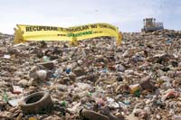 Mediante un concertado operativo que incluyó la utilización de tres helicópteros, militantes de la organización ambientalista Greenpeace ingresaron al “relleno sanitario” del Camino del Buen Ayre –donde se vierten todos los residuos de Capital y conurbano norte– para manifestar su alarma ante la actual política de tratamiento de la basura y reclamar la adopción de un plan de reducción de residuos denominado “Basura Cero”, que viene aplicándose en distintos lugares del mundo. La entidad presentó también los resultados de un análisis de muestras tomadas en el relleno de Villa Dominico (perteneciente, como el anterior, al Ceamse), donde se detectan tóxicos “por encima de los niveles permitidos por la legislación”. La acción de los ambientalistas se ubica en un momento crítico para la política de residuos de la ciudad de Buenos Aires: por una parte, el llamado a licitación para un nuevo maxirrelleno sanitario –que se ubicaría esta vez a 150 kilómetros de la ciudad– fue prorrogado porque la mayoría de los municipios se niega a aceptar la basura; por otra parte, se presentó en la Legislatura porteña un proyecto multipartidario que impulsa un plan integral, de aquí a 15 años, para minimizar la cantidad de basura.