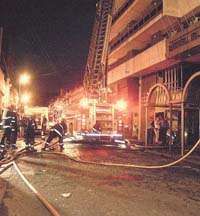 Se desató un incendio en el quinto piso. El fuego subió hacia el décimo. Fallecieron cuatro personas. Una mujer murió al arrojarse al vacío. Los bomberos no tenían escalera mecánica.