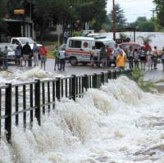 Las fuertes lluvias provocaron torrentes. Cerca de Carlos Paz, un puente fue arrancado de cuajo por la crecida. En San Luis también se produjeron inundaciones. Alertan a los turistas.