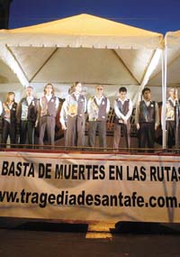 Entre las actividades que se desarrollaron en el escenario, el autor y director teatral Hugo Midón leyó un mensaje de apoyo a los familiares y después presentó a parte del elenco de su obra Derechos torcidos, todos niños, niñas y adolescentes que cantaron canciones alusivas a los derechos de los chicos. El Coro Kennedy también pasó por esas gradas y, para el evento, sus integrantes entonaron las estrofas del tema “El día después”, con una vela en la mano. Pero el momento más emotivo estuvo dado por la lectura, en la voz de Ruiz, de cartas escritas por compañeros y amigos de las víctimas, y de personas que ayudaron a los accidentados, como la de una radióloga del hospital santafesino donde, aquel trágico 8 de octubre de 2006, fueron derivados los chicos.