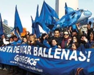 Un día antes de que los miembros de la Comisión Ballenera Internacional (CBI) comiencen a discutir en Alaska el futuro de las ballenas, se realizaron manifestaciones en reclamo de protección de estos cetáceos, en una convocatoria internacional realizada por la organización Greenpeace. Entre los participantes en el Obelisco ayer a las 14, participó Natalia Oreiro. También se marchó en Rosario y Córdoba. Los manifestantes participaron vestidos con una prenda azul, color distintivo de las ballenas. El director ejecutivo de Greenpeace Internacional, Gerd Leipold, exigió “a los delegados de la CBI que no resuelvan nada perjudicial a las ballenas”.