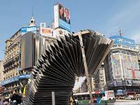 El primer monumento a un género musical fue emplazado ayer en Puerto Madero. Mide cinco metros y pesa dos toneladas. Se trata del Monumento al Tango, un fuelle de bandoneón realizado en acero que se inaugurará el 22 de noviembre. Su costo, 350.000 pesos, se financió con lo recaudado en recitales benéficos, colaboraciones privadas y los aportes de artistas. Desde ayer está emplazado en Azucena Villaflor y Avenida de los Italianos, en Costanera Sur.