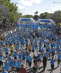 La creciente y saludable moda de los maratones sumó ayer una nueva. Unos 25 mil corredores recorrieron de punta a punta el barrio de Palermo, en el maratón Los 10k, que arrancó a las 8.30 en el Monumento a los Españoles, frente al Botánico, y cuyo circuito demandó una hora. La consigna de la carrera fue “Todos somos corredores” y así juntó a deportistas profesionales con vecinos, chicos, adultos y hasta ancianos. En esta edición fueron creadas tres categorías, o clubes, para los corredores. “El club de los no corredores que corren”, para los amateurs; “Las aves de fuego”, para los corredores a quienes les falta un poco de constancia, y el “Cartel Endorfina”, para los adictos. Simultáneamente, la competencia, organizada por la empresa Nike, tuvo lugar en otras ocho ciudades: Santiago de Chile, Montevideo, San Pablo, México, Caracas, Bogotá, Lima y Guayaquil. En total participaron unas 130 mil personas.
