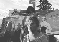 En una cruz de tres metros de alto ayer se ató un costurero de nacionalidad boliviana para denunciar que “la mayoría de las marcas auspiciantes del Buenos Aires Fashion Week (BAFW) rehúyen ser auditadas por el INTI para que certifiquen en toda su cadena de valor que no usan trabajo esclavo y tampoco informan con qué talleres confeccionan sus prendas”, apuntó Gustavo Vera, de la cooperativa La Alameda. Debajo del costurero crucificado, otro, también de nacionalidad boliviana, trabajaba sin parar en su máquina de coser, instalada frente a la Rural, donde se desarrolló el BAFW. Tras ellos, un inmenso cartel rebautizaba al evento “Buenos Aires; capital del trabajo esclavo”. En los últimos años fueron denunciadas Adidas, Puma, Lacoste, entre otras 85 marcas, por favorecerse con trabajo esclavo.