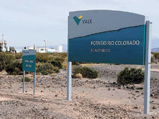 “A partir de mediados de 2013”, según datos estimados al comienzo de la inversión por la propia minera Vale, del yacimiento de cloruro de potasio de la zona de Malargüe, en Mendoza, comenzarían a extraerse 2,4 millones de toneladas de mineral por año, los que llegaría rápidamente a los 4,3 millones de toneladas, también anuales. Siempre según la empresa, las reservas del yacimiento alcanzarían, al citado ritmo de extracción, para no menos cincuenta años, lo que significa una reserva de potasio de al menos 200 millones de toneladas.