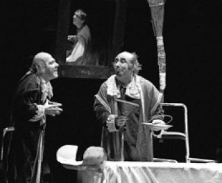 “¡A ver si lloro!”, dice uno, y repite la frase con distinta entonación cada vez, produciendo un efecto cómico. Para ganar tiempo, organizan un velorio: arrastran muñecos y sillas y se colocan capas de señor sobre los harapos. Entre torpezas y aseveraciones que causan risa, se meten con “el pasado que ahoga”. Es necesario cortar por lo sano, de cuajo, y utilizan una guillotina que aquí es una tabla de fregar ropa. Una salida cómica que no desmerece la tragedia, tan particular en las obras de La Zaranda, donde aun los personajes más delirantes y atontados no olvidan denunciar la escandalosa ambición de poder de quienes aniquilan si no se les rinde tributo.