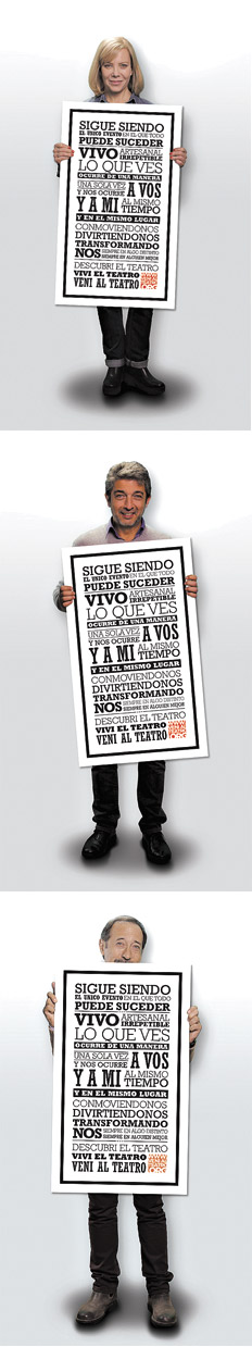 Con el objetivo de instalar a octubre como el “mes del teatro”, la Asociación Argentina de Empresarios Teatrales (Aadet) presentó oficialmente ayer, y por segundo año consecutivo, la campaña “Vení al teatro”, que busca estimular y reforzar la afluencia de público en los espectáculos del circuito comercial a través de acciones promocionales y charlas y debates con los elencos. Este año, la novedad es que la acción se extenderá a los teatros asociados del interior del país. “El teatro sigue siendo el único evento en el que todo puede suceder. Vivo, artesanal, irrepetible. Lo que ves ocurre de una manera, una sola vez y nos ocurre a vos y a mí al mismo tiempo y en el mismo lugar. Conmoviéndonos, divirtiéndonos, transformándonos siempre en algo distinto. Siempre en alguien mejor. Descubrí el teatro. Viví el teatro. Vení al teatro”, reza el manifiesto.