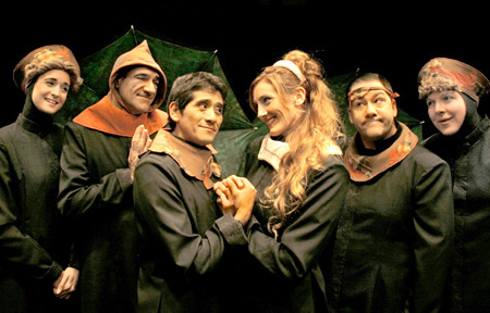 Las propuestas son ambiciosas: Robin Hood es interpretada por Oski Guzmán y Omar Calicchio y musicalizada –como todas las obras de Presa– por Angel Malher, y la puesta en escena está constituida íntegramente por paraguas, que hacen de las diferentes escenografías, y cada personaje es, a su vez, su antagonista, juego que se define a partir del uso de capuchas rebatibles que identifican a buenos y malos, de acuerdo a si se usa de pechera o de sombrero. “La primera idea fue la de los cuellos, que cambiando de posición marcara otro personaje –recuerda el director–, y lo que quería era un elemento estético que me propusiera lo mismo, que girándolo me planteara una cosa y la otra. El paraguas apareció como una cosa natural”, ya que con La Galera Encantada siempre se caracterizaron “por trabajar con cosas sencillas, que el pibe tuviera al alcance de la mano, que pueda ir a su casa y jugar con eso”, destaca, y explica que “todos juegan con las confusiones que se suceden cuando esto funciona de una manera o de otra...”
