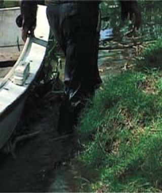 Como si nadie la condujera, la cámara encuentra el río y lo sigue como a un Dios que lo abarca todo. Incluso al hombre, otro detalle del paisaje que casi puede ser visto con claridad, pero también de-sencajado por un fuera de foco que lo funde a las sombras verdes y grises de la ribera. Los reflejos sobre la corriente atestiguan que otra imagen del mundo es posible. No es raro que un colega cediera a la tentación de dormirse en primera fila: todo aquello bien podría ser la duplicación de un sueño.