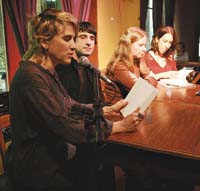 El tercer alejandrino se llama Juan José Burzi –30 años, autor de la novela El trabajo del fuego, publicada por la Universidad de La Plata, y hacedor de la revista Los Asesinos Tímidos– y es el que va presentando a las lectoras. Claudia Feld pone a contar a una taxista y su extraña experiencia con un pasajero que se va para Ezeiza, pero antes hace unas cuantas paradas misteriosas y la invita a comer un asado hecho por él mismo, con carne que saca de su enorme valija; Alejandra Laurencich le da voz a una mujer lastimadísima y resentida que va en viaje hacia el hospital donde su bebé sufre una enfermedad terrible; Selva Almada cuenta “El llamado”, el extrañamiento de una mujer que oye por teléfono cómo un desconocido le dice que es su hijo; entre el humor y el espanto, Gabriela Cabezón lee “La hermana Cleopatra”, el devenir de un travesti con “look Eva Perón” al que le habló la Virgen, cuya primera noticia data de sus doce años y proviene de la prensa, más precisamente de Crónica: “Barbarie homofóbica: casi mata a su hijo porque el nene quiere ser como Susana”. Al final, Florencia Abbate comenta de la experiencia del armado de la antología y no necesita que se declare contentísima, porque es evidente: “Me parece que en la Argentina hay un montón de gente que escribe y los espacios para publicar no dan abasto para dar a conocer la producción que hay circulando. Y también me pareció interesante rastrear y ver qué estaban produciendo escritoras que tuvieran más o menos mi edad”.