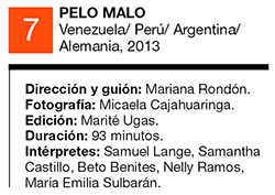 Lo loable del opus 3 de Rondón es que no cae en el panfleto obvio, ni siquiera en lo que se conoce como “film de denuncia”, sino que imbrica el retrato político en el drama íntimo. El conflicto del título –aparentemente nimio, y sin embargo crucial– transparente el cuidado que ha puesto Rondón, autora también del guión, en cerrarle el paso a toda interpretación unidireccional. Lo “malo” del pelo de Junior (el debutante Samuel Lange) es que es rizado, y él quiere alisarlo como sea. Sucede que su papá, asesinado en circunstancias no especificadas, era negro. Mamá no. ¿Lo que le molesta a Junior es tener pelo mota o que ese pelo le hace recordar a papá? ¿O ambas cosas? El relato es lo suficientemente elíptico como para no responder jamás esa pregunta y otras. Pero el hecho de que al chico le digan Junior habla de una ligazón con el padre que más parece un yugo. Uno más.