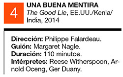 Porque una sola escena es lo que necesita Una buena mentira para dejar a mucha gente fuera del mundo de un plumazo. De nada servirá retroceder hasta la infancia de esos chicos para mostrar de forma gráfica el modo en que sus familias fueron masacradas por un ejército al que no es necesario ponerle un nombre, porque está claro que son los malos de siempre, una excusa para que los buenos entren en acción. Por eso tampoco importan mucho las especificaciones históricas, porque la guerra de Sudán en los ’80 o cualquier otra dan lo mismo. Lo importante es enseñar al espectador, que está cómodo en su butaca, la suerte que tiene de vivir dentro del mundo y de ver, gracias al cine, lo mal que lo pasa el otro. La película es entonces miserablemente tranquilizadora y los siguientes pasos son de manual. Primero aligera las cosas con algunos pasos de comedia, provistos por la vieja rutina del buen salvaje: los chicos llegan a la civilización y los sorprende que las luces se enciendan tocando un botón, el agua salga de las canillas y otras gracias por el estilo. La frutilla del postre es el anuncio, justo antes de los créditos finales, de que los protagonistas no son actores sino verdaderos refugiados jugando a ficcionalizar lo que antes sufrieron en carne propia. Un recurso muchas veces lícito, pero que aquí pretende hacer pasar al cine por documento histórico, un avatar de la verdad.