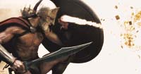 Protagonizada por un elenco que parece haberse sometido a gárgaras de gasoil antes de bajar al set, el director, Zack Snyder (que un par de años atrás había debutado con una muy buena remake de Amanecer de los muertos, de George Romero) somete esta apoteosis muscular a un denso baño estetizante, dándole a la fotografía un tono uniformemente cobrizo y digitalizando masivamente la imagen. Lo cual termina de irrealizar el episodio narrado, arrancándolo del orden que lo contenía (el de la historia) y sumergiéndolo en su contrario: el reino del videoclip.