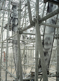 Al revés que otros países, que restringen la entrada a sus pabellones a unos pocos visitantes por vez y obligan a hacer larguísimas colas (como Gran Bretaña o Estados Unidos), Boltanski deja siempre la puerta abierta (coherente con el eje y la perspectiva visual de la obra) y permite ver el corazón de su propuesta desde afuera, incluso desde lejos. Pero para apreciar en todas sus dimensiones y sensaciones la obra debe ser recorrida por dentro. La exposición sucede en cuatro salas: un enorme recinto central en el que una enorme estructura tubular domina todo el espacio. Allí, en el interior de esa estructura compleja, a través de sistemas electromecánicos, corre una gran película (que luce como una sucesión de fotogramas de gran tamaño) con la imagen de un bebé. Entre los tubos se desliza esa “película” sinfín, como si estuviéramos en el interior de un aparato proyector de cine. El ruido es muy fuerte y funciona como banda de sonido: machacona, fabril, mecánica, serial. Hasta que en un momento se detiene. Y luego recomienza.