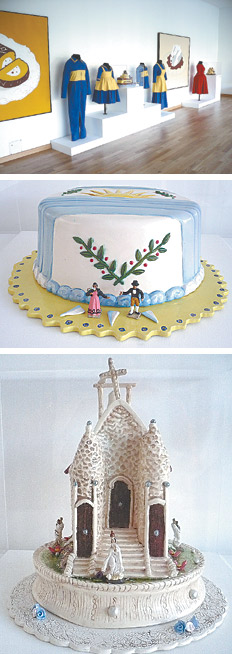 El gran dramaturgo, actor y director argentino radicado en París desde 1969 ideó este universo dedicado a las tortas de Doña Petrona para rememorar su propia infancia, que tenía como telón de fondo la década peronista en que comienza el ascenso social. Ramírez confecciona los vestuarios en base a su hipótesis de que “en cada festejo hay un rito y en cada rito hay un traje. Nadie come una torta sin un traje”. Mientras que Stoppani evoca pictóricamente, en gran escala, las ilustraciones originales del libro. Aquí los años ’40 y ’50 son recordados desde el artificio de las tortas que, hechas en cerámica, resultan tan difíciles de ingerir como las originales. Las recetas del famoso libro de Petrona, que vendió más de cien ediciones, tienen tantos huevos y manteca que no parecen pensadas para alimentar, sino como objetos barroco/kitsch.