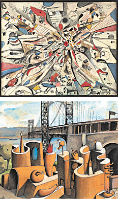 Estructuradas por la grilla ortogonal en algunos casos o en el pasaje hacia un tratamiento más libre –aunque aun ceñido a la frontalidad y la síntesis simbólica–, este conjunto representa una de las fisuras que se fueron produciendo en las fronteras de la regla constructiva aprendida. Al mismo tiempo, muestran las huellas de Buenos Aires, que representan también ese otro cruce de frontera, como parte de la apertura de horizontes que Gurvich siempre buscó.