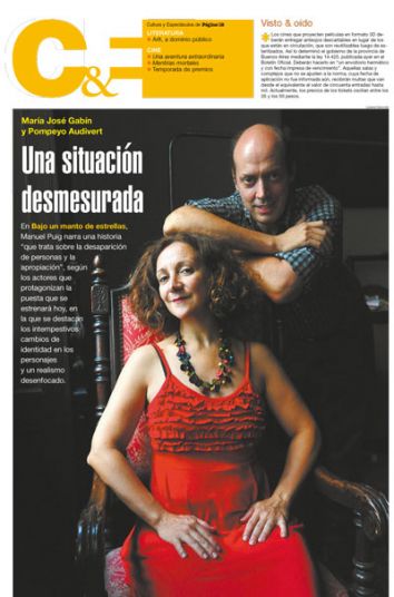 María José Gabín y Pompeyo Audivert: En Bajo un manto de estrellas, Manuel Puig narra una historia “que trata sobre la desaparición de personas y la apropiación”, según los actores que protagonizan la puesta que se estrenará hoy, en la que se destacan los intempestivos cambios de identidad en los personajes y un realismo desenfocado.
