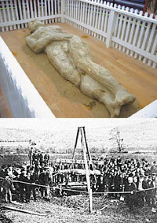 Todo era una mentira. Y a mediados de diciembre, apenas un par de meses después de la excavación, alguien abrió la boca: George Hull, el primo de Newell. En realidad, este fabricante de cigarrillos de Nueva York era el verdadero cerebro que se escondía detrás de toda la maniobra. Habiendo cobrado lo suyo, y viendo que la cosa se ponía fea, Hull decidió contar la verdad. En 1866, compró un enorme bloque de yeso y se lo envió a un grupo de escultores de Chicago para que tallaran la silueta del gigante. El trabajo duró dos meses. Luego, el propio Hull le dio los toques finales: primero lo pinchó por todas partes con agujas de tejer para simular una piel porosa. E inmediatamente después, bañó al gigante de yeso con un ácido, para darle un aspecto más amarillento y antiguo. Una vez terminado, lo colocó en una gran caja de madera y lo despachó por tren hasta Nueva Cork. Y de allí fue discretamente transportado hasta la granja de su primo, quien enterró la mole sin que nadie lo viera. Por último, para evitar sospechas y darle al hallazgo un tinte un poco más natural, el gigante quedó bajo tierra durante un año, hasta que, finalmente, fue desenterrado por los sorprendidos excavadores.