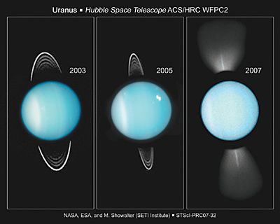 En 2007, Urano alcanzó su equinoccio: el Sol pegó de lleno en su ecuador, comenzó a asomar en el Polo Norte del planeta (primavera), y a ocultarse en el Polo Sur (otoño). Desde ese momento, la actividad atmosférica (nubes y vientos) siguió aumentando año tras año, especialmente en el reaparecido Hemisferio Norte. De hecho, allí ya se ha formado un “Collar Norte”. Heidi Hammel redondea: “Sospechábamos que Urano podía hacerse más parecido a Neptuno mientras se aproximara a su equinoccio, y la repentina aparición de todos estos fenómenos recientes parece indicarnos que teníamos razón”.