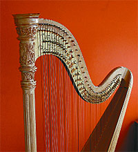 E. G.: –El arpa que yo toco deriva del arpa celta, que originariamente es diatónica de siete notas, pero sufrió una evolución para poder integrarse a la orquesta, con todas las tonalidades. Un constructor de pianos inventó un mecanismo para alcanzar estos fines: es el arpa a pedal que uso ahora. Se sabe que el arpa está desde las civilizaciones más antiguas, incluso hay estatuillas prehistóricas con el arpa triangular. Si se tiene en cuenta que la mayoría de sus intérpretes son mujeres, se podría decir que es un instrumento femenino. En la pintura, la escultura es casi un lugar común la mujer pulsando sus cuerdas. Quizá su sonido que tiene mucho cuerpo, es tan sensorial, está más cerca del alma femenina.