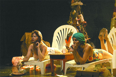 –Exactamente, aunque es más fácil pensar en un ciruja. Puse cartones en escena porque no se podía usar basura de otro tipo, por el olor, claro. Pero Toto y Loro no son cartoneros, sujetos que tienen una inscripción social, están organizados, trabajan. El cartonero está el borde del sistema, el ciruja está afuera de todo. Por lo tanto, puede tener todos los discursos posibles. En mi obra no hay ningún verosímil, apenas algún restito: algunos son profesores de filosofía y hablan en francés, dicen oui... Además son antropófagos, o dicen serlo. Todo lo que comentan del pasado puede ser inventado. Es decir, ni psicología, ni pasado, ni progresión dramática. Ellos explotan las posibilidades discursivas y después se matan. Hablan de sexo, de muerte, de revolución sexual, de amor, de filosofía, se cuentan cuentos.