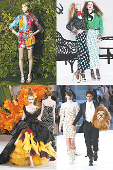 Unos días antes de la saga de alta costura, en el contexto de las resort collections –léase pasarelas de ropa para las vacaciones de los ricos–, Miu Miu, la marca más accesible de Prada, aludió a mujeres “sensuales, insolentes y con humor”. Como correlato de las sentencias de Miuccia, la creadora de la marca, irrumpieron citas a Yves Saint Laurent, a los tricots y las rayas de Sonia Rykiel, además de un arsenal de estampas de fresas y de corazones, que le daban una aire retro y naïf. Sí resultó más atractiva la colección de Antonio Marras para Kenzo, pues aludió a su etapa fok de antaño pero remozada. Abundaron los coloridos, ya en foulards rescatados de archivos, fabulosos vestidos con estampas florales y paneos revisionistas a fragmentos de kimonos.