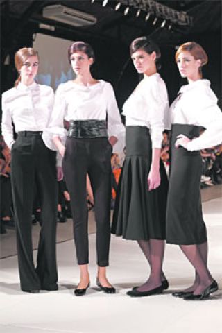 Sus vestimentas negras y blancas, de construcción meticulosa, se impusieron a la ostentación de ornamentos y de “conceptos” que suelen abundar en las pasarelas. Por el contrario, fueron las modelos –una población de cincuenta con sus ojos delineados de negro y un peinado que las uniformaba– quienes conformaron una gran puesta en cinco cuadros de moda iluminados con haces de luz muy blanca. Y el guión de ese corpus se refirió tanto a los múltiples usos y posibilidades de la camisa blanca pasando por el trench –¡y su prima hermana, la capa!– sin omitir elogios al smoking (que desafió su androginia con exhibiciones de bustiers) y variaciones del vestidito negro.