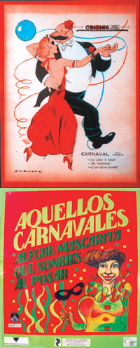 Tal vez los disfraces más originales, las fotos de trajes más asombrosas sean las de los años 20 al 30. Más allá de los clásicos ejemplos de dama antigua, están, por ejemplo, los ya comentados tréboles, y otros imposibles de descifrar. Fantasías puras, como las que promocionaba una publicidad de la tienda “La Giralda”, que ofrecía su “numerosa colección de disfraces y fantasías, para señoras y niñas”, siempre dentro de su línea de “ropa elegante” ajustada a todos los presupuestos, “desde el más modesto hasta el más opulento”. Desgraciadamente, la falta de espacio no permitió exponer una de las fotos que más recuerda Peña: “Una mujer disfrazada de Diagonal, de la calle Diagonal. Tenía una construcción enorme, de cartón, y algo la cruzaba de lado a lado. Al lado de ella, había otra mujer... disfrazada de rascacielo”.