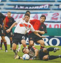 Porque a su decisión para plantarse en campo rival, River la sostuvo con esfuerzo pero no con fútbol. Apretó a Newell’s con largos ratos contra sus propios palos. Pero lo hizo mediante centros y pelotazos frontales; rara vez pudo poner a un hombre mano a mano con Villar. En pocos tramos del partido, los rosarinos se animaron a pelear la posesión de la pelota y de la mitad de la cancha. Dieron la impresión de un equipo sin fibra, impreciso, tempranamente resignado al empate. Lo alcanzaron al final del primer tiempo, en una jugada aislada: Ortega (ovacionado de principio a fin por los hinchas de River) ejecutó un tiro libre, la pelota pegó en la barrera y el propio Ortega clavó el rebote en un ángulo. Nunca lo merecieron.