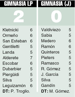 Con goles de Leguizamón y Ormeño, Gimnasia derrotó 2-0 al conjunto de Jujuy, en La Plata, y consiguió su primer triunfo del campeonato. De entrada, fue el visitante el que se adueñó de la pelota. Pero, en el mejor momento del equipo dirigido por Mario Gómez, el local se puso en ventaja: