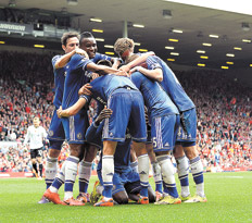 Con los goles del bosnio Edin Dzeko y del marfileño Yaya Touré, el Manchester City, con Sergio Agüero, Pablo Zabaleta y Martín Demichelis entre sus titulares, superó ayer 2-0 como visitante al Crystal Palace en la 35ª fecha de la Liga Premier inglesa y quedó tercero con 77 puntos, a tres unidades de la punta del certamen. El equipo dirigido por el chileno Manuel Pellegrini aprovechó que el líder Liverpool (80) cayó ayer 2-0 con el escolta Chelsea (78), dirigido por el portugués José Mourinho, cuando restan dos fechas para el final de la Liga (foto). En el otro choque disputado ayer, el Sunderland goleó 4-0 como local al Cardiff City, mientras que, desde las 16, Arsenal y Newcastle cerrarán la fecha.