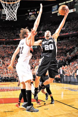 Emanuel Ginóbili aportó anoche 14 puntos en la victoria de San Antonio Spurs sobre Portland Trail Blazers 118-103, que dejó match point la serie semifinal que juegan al mejor de siete partidos por la Conferencia Oeste de la NBA.