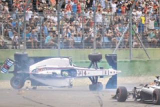 Una sola curva le duró a Felipe Massa (Williams) el Grand Prix de Alemania de F-1: pasó por encima de una rueda del McLaren de Kevin Magnussen, volcó y, aunque ileso, quedó fuera de combate. Resultó su tercer accidente en los últimos cuatro Grand Prix. Su coequiper Valtteri Bottas terminó segundo de Nico Rosberg (Mercedes), que ganó cómodamente y estiró a 14 puntos la ventaja en el Mundial sobre su compañero Lewis Hamilton, quien completó el podio, y se convirtió en el primer alemán en ganar con un coche alemán el Grand Prix de su país desde 1939.