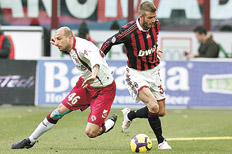 Milan igualó 1-1 con Livorno, de local, y no aprovechó su oportunidad para acortar la diferencia de ocho puntos con respecto al Inter, el líder de la Liga de Italia, que ayer no pudo disputar su partido ante Parma, debido al mal estado de la cancha del equipo parmesano, la cual estaba cubierta de nieve. Y para proteger la seguridad de los espectadores, se decidió suspender el encuentro, que ahora se realizará el 10 de febrero. En otro de los encuentros de la fecha 22ª, con la presencia de Nicolás Burdisso, Roma venció 2-1 a Siena y se mantiene en tercero en las posiciones.
