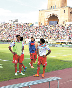 Catania, el equipo más argentino de la Liga, descendió a la Serie B, pese a ganarle de visitante a Bologna, que también perdió la categoría. Fabián Monzón y Gonzalo Bergessio marcaron los goles del triunfo. Además, fueron titulares Gino Peruzzi (expulsado), Mariano Izco, Pablo Barrientos, Sebastián Leto, Fabián Rinaudo y Lucas Castro. También descendió Livorno, al caer como local ante la Fiorentina. El campeón Juventus, con Carlos Tevez de titular y un gol del argentino nacionalizado italiano Daniel Osvaldo en tiempo de descuento, le ganó agónicamente a su escolta Roma, de visitante, con lo que amplió a catorce unidades su ventaja en la tabla. Germán Denis marcó de penal el primer gol de Atalanta, que venció a Milan.