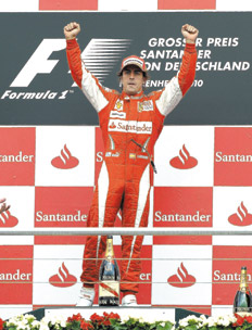 En una carrera que tuvo un desenlace polémico, el español Fernando Alonso, de Ferrari, terminó primero ayer en el Gran Premio de Alemania, que se disputó en el autódromo de Hockenheim, en la undécima de las 19 competencias del Campeonato Mundial de Fórmula 1. Su compañero de equipo, Felipe Massa, y Sebastian Vettel, de Red Bull, completaron el podio. No obstante, la escudería ganadora fue sancionada con una multa y deberá comparecer ante la Federación Internacional del Automóvil (FIA), por la orden que habría impartido desde boxes para que Massa dejara pasar al español. “Un piloto siempre quiere ganar y no puedo estar completamente feliz con el segundo puesto”, aseguró el brasileño, con el objetivo de negar todo tipo de acusaciones.