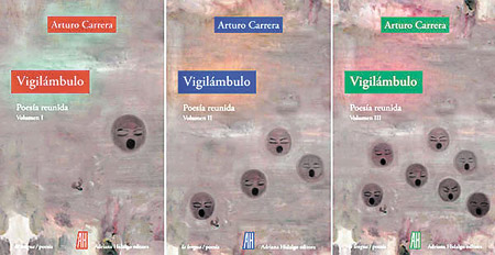 Publicada en tres tomos que suman casi 2000 páginas, Vigilámbulo abarca la poesía reunida de Arturo Carrera, que toma su título del último poemario de 2014 y traza una cronología inversa hasta llegar al mítico Escrito sobre un nictógrafo. Este gran esfuerzo editorial de Adriana Hidalgo pone en escena la permanente tensión entre poema, verso y escritura de uno de los más grandes poetas latinoamericanos, que a lo largo de ya cinco décadas problematizó el concepto mismo de poética, no eludió la lírica, sobrevoló el oro y el barro del neobarroco y esquivó los riesgos de lo clásico, así como también los reduccionismos de las vanguardias. Radar propone una aproximación y un homenaje a Carrera a partir de estos volúmenes que plantean vías alternativas al lector para acceder a su obra.