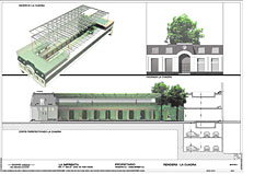Como se puede ver en las dos imágenes, el grado de protección de las dos piezas es muy diferente. La Cuadra la tiene muy alta, con lo que no puede alterarse su aspecto ni volumetría. El nuevo proyecto mantiene su actual aspecto de galería y sólo elimina el techado liviano de vidrio que se había colocado cuando se hizo el restaurante. Este techo vidriado se reemplaza por otro más alto, con lo que se crea una circulación nueva por encima de las caballerizas en sí. Esto es, el techo vidriado queda rasante con la mansarda del frente, invisible desde la calle. Esta cubierta no cierra todo, porque atrás quedan los árboles al aire libre.