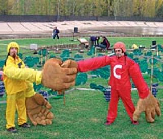 Desde el lunes está rotando por diversos canales musicales un nuevo video de Karamelo Santo. Pertenece al tema Los cangrejos (tercer corte de Haciendo bulla, cuarto disco de la banda) y su esencia se condensa en una frase: “No somos estrella de mar / somos cangrejo de río / que se juntan con cualquiera / a planear la epopeya”. “Es una forma de plantear que en la Argentina uno avanza, sí, pero como los cangrejos, con el culo para atrás”, define Goy Ogalde ante el No. El clip tiene una estética un tanto grotesca, que recuerda a aquel viejo programa de entretenimientos alemán que Canal 11 –para algunos en blanco y negro– pasaba hace unos 20 años los domingos al mediodía: Telematch. Los Karamelo tomaron la idea, pero trocaron costumbres bavarias por viñateras y cuyanas... Las competencias que “los cangrejos” siempre pierden tienen que ver con carreras de carretas entre las viñas, o con llenar a baldazo limpio grandes copas de vino.
