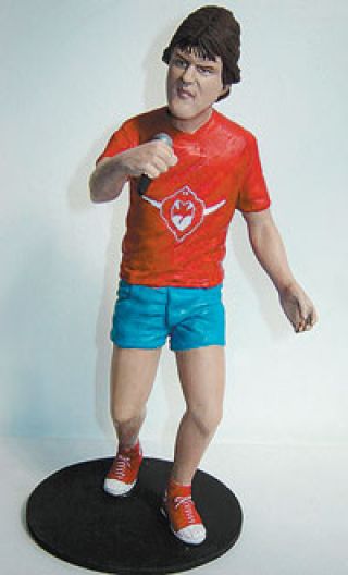 ¡Llegó la estatua de Andrés Ciro! Pero que en el Instituto Sanmartiniano nadie se asuste: por el momento la escultura que representa al frontman de Los Piojos no se encuentra en ninguna plaza de la Argentina sino en una colección privada, ya que fue realizada por encargo de un seguidor de la banda. Su autor es el ceramista Sebastián Minissale, de 31 años, especializado en figuras basadas en personajes de comics y películas, pero que por pedidos de clientes ya modeló a otros iconos rockeros como los Rolling Stones, Luca Prodan o Charly García. La estatuilla de Ciro mide 22 centímetros de alto, costó 95 pesos, fue hecha en arcilla horneada y pintada con acrílicos. “En realidad no soy fan de Los Piojos, aunque me gustan”, admite al NO Sebastián, cuyos trabajos (rockeros y no rockeros) pueden chusmearse en www.samescultor.com.ar. Un detalle retro: el Ciro de la estatua tiene un look propio de los noventosos días del disco Ay, Ay, Ay.
